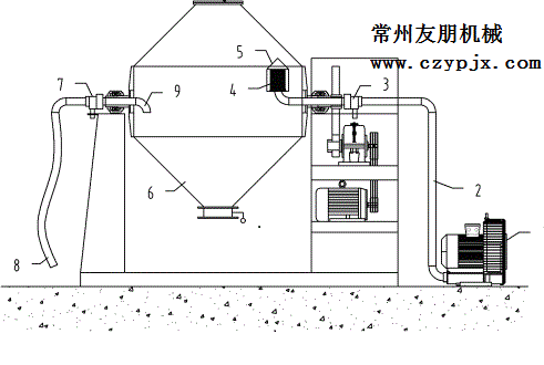 雙錐回轉(zhuǎn)真空干燥機結構示意圖